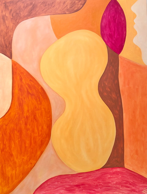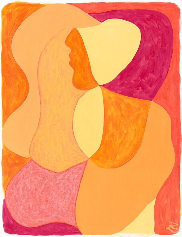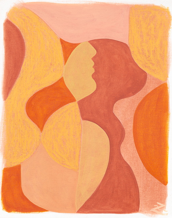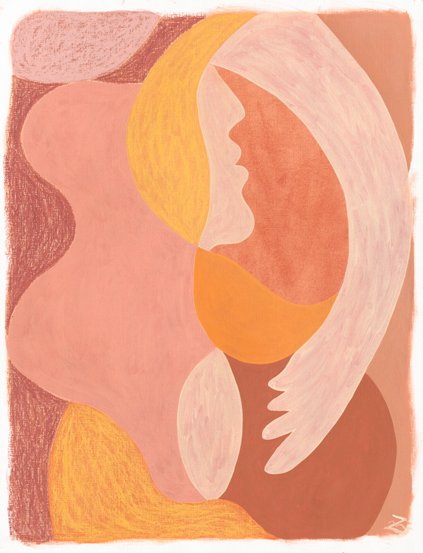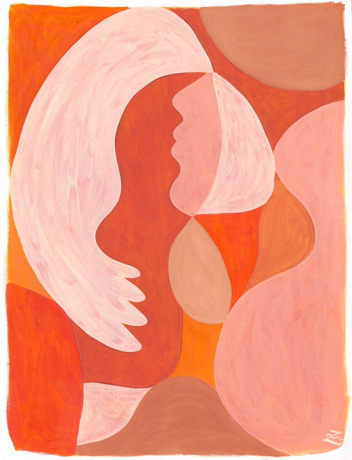 The title Mo-Rose comes from the French word « morose » which means gloomy and I tried to be optimistic instead by using colours that make me feel good, alive and reassured. Unintentionally I had created this series with common tones and the guideline is pinky tones: « rose » in French.